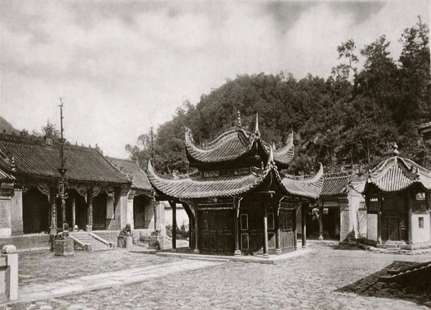 Tradition holds that the Temple of the Marquis of Liu marks the spot where Zhang Liang 張良 (d.186BCE), Marquis of Liu, a strategist and hero of the Han Dynasty is said to have lived in reclusion. The temple building seen in the centre of Boerschmann's image is the Hall of the Efficacious Official (Lingguan Dian 靈官殿), which was built during the Ming dynasty (1368-1644).[Fig.1] The present hall dates from the 1980s, when it was reconstructed. It is evident from the more recent picture that considerable changes have been wrought to the rest of the grounds as well.[Fig.2] Located in Liuba County, Hanzhong, Shaanxi province 陝西省漢中留壩縣, it is also more popularly known today as Zhang Liang Temple (Zhang Liang ci 張良祠).